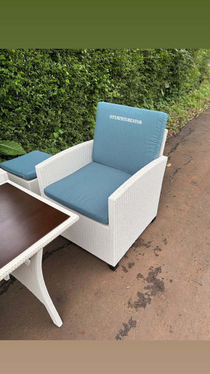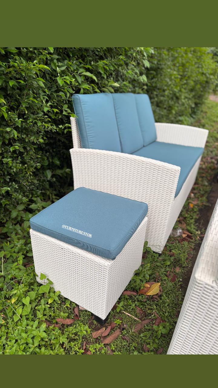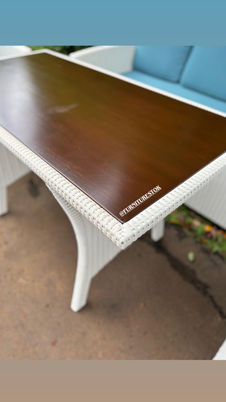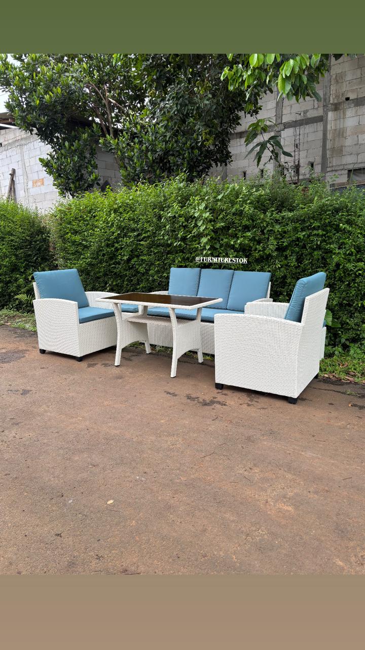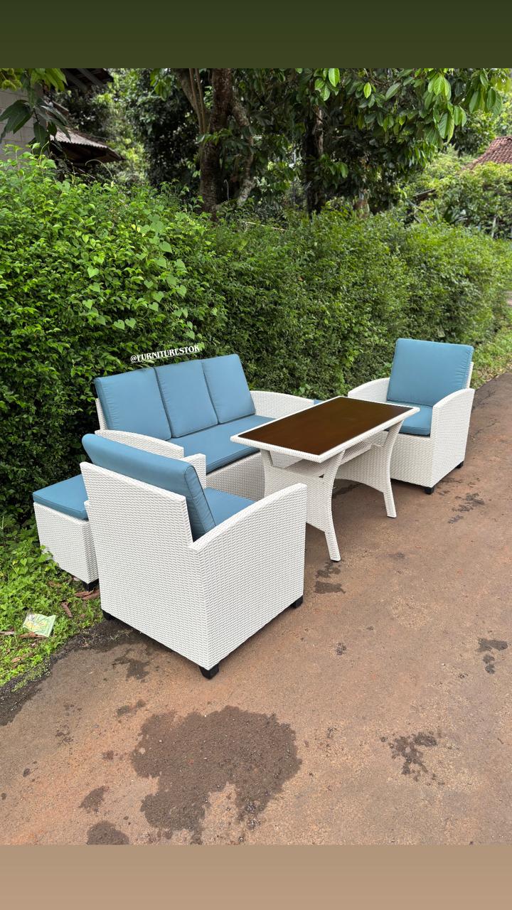Meja dan kursi memiliki rangka kokoh yang stabil serta anyaman rattan sintetis yang rapi dan kuat. Material ini tidak mudah lapuk, tidak berjamur, dan lebih mudah dirawat dibanding rattan alami. Desainnya modern dan elegan, mampu mempercantik area outdoor dengan tampilan yang bersih dan nyaman.