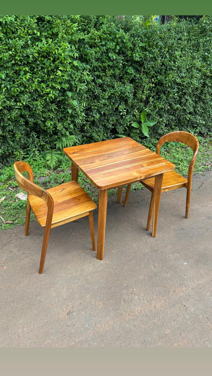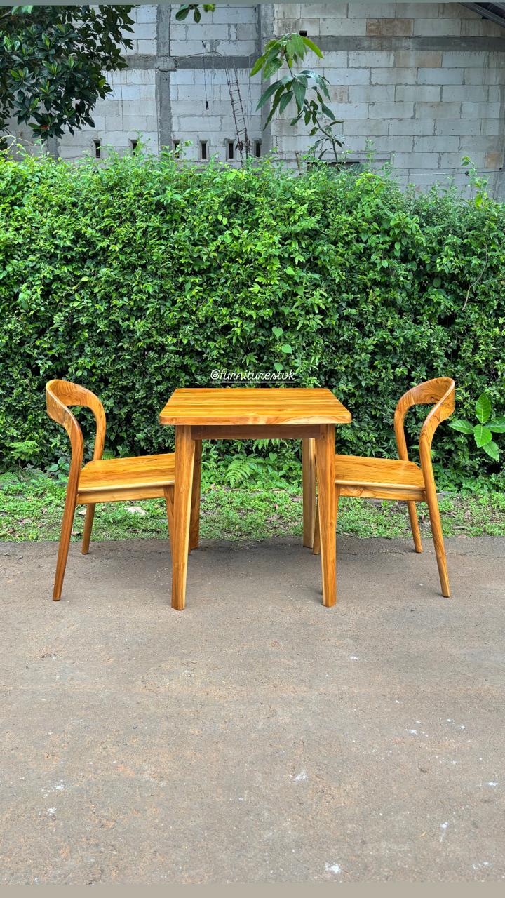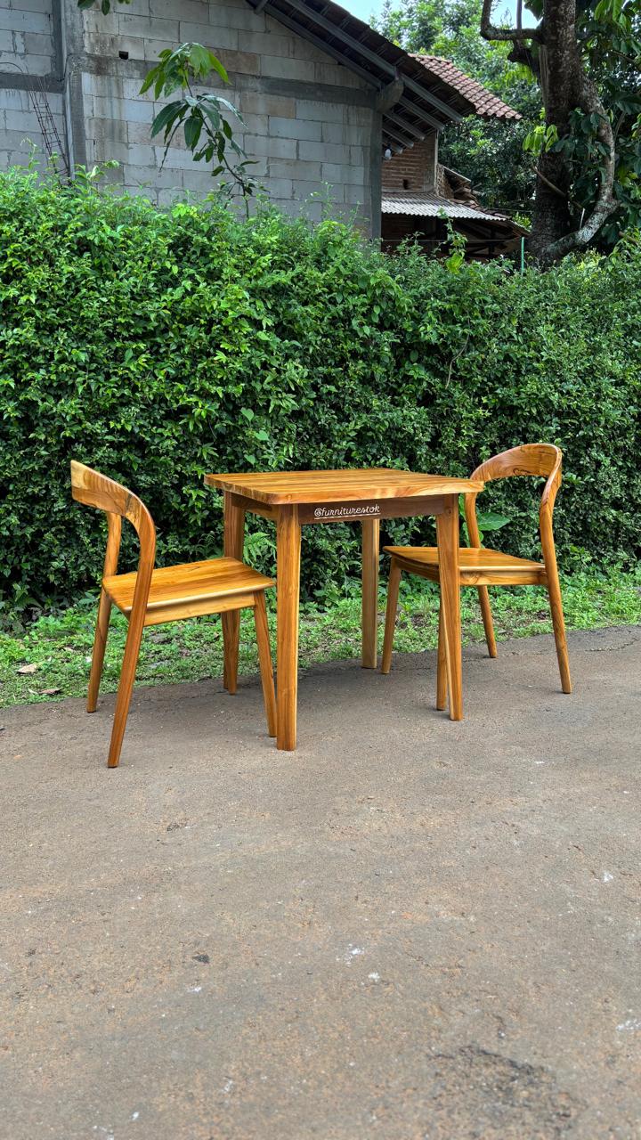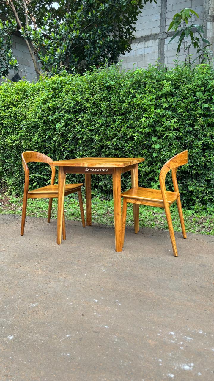 Set meja makan jati 2 kursi ini dibuat dari kayu jati solid pilihan Jepara dengan kualitas kuat dan tahan lama. Desainnya sederhana namun elegan, cocok digunakan untuk ruang makan rumah, apartemen, maupun ruang makan minimalis dengan ukuran terbatas.